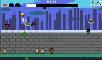 When in air, Space or X to double jump, and shoot money. This will fill up your heat meter. If it fills up all the way, you have to wait while trump cools down before you can shoot again!
